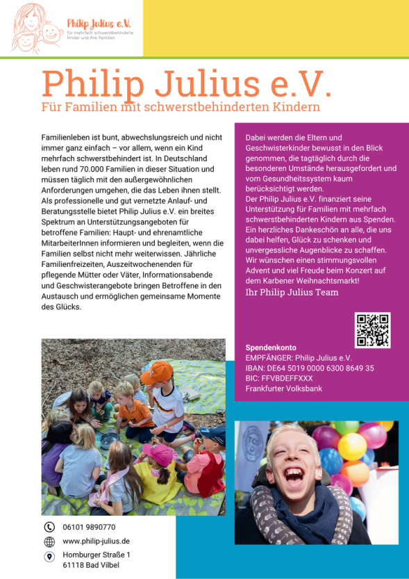 Der Reinerlös des Abends kommt dem Philip Julius e.V. zugute, sodass jede Eintrittskarte doppelt Gutes bewirkt: für Herz und Ohr.